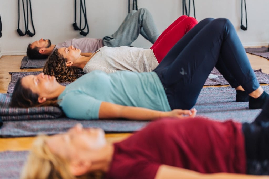 • Wystarczy przynieść wygodny strój, ćwiczymy bez obuwia. Na miejscu są maty i koce.